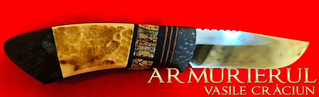 Cutit de vanatoare @CRV ,otel ZDP189 ,fildes de mamuth fosil ,stejar de balta fosil ….si multa pasiune .are aproximativ 150 ore manufactura.