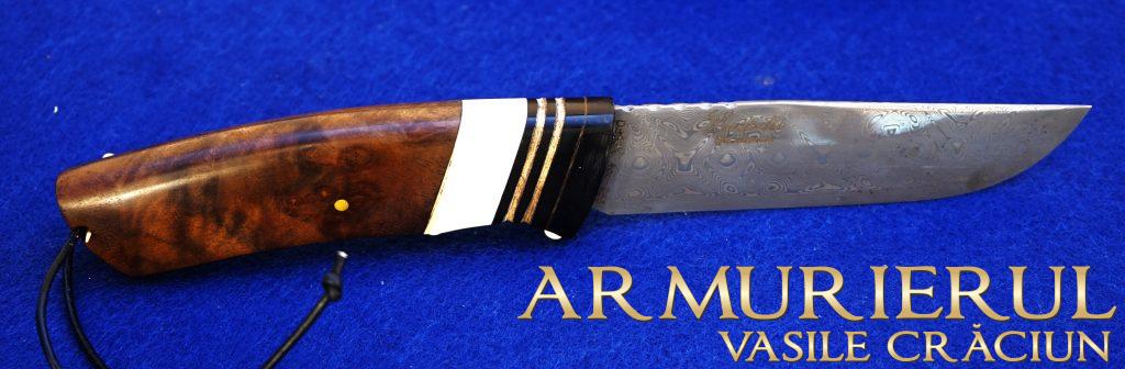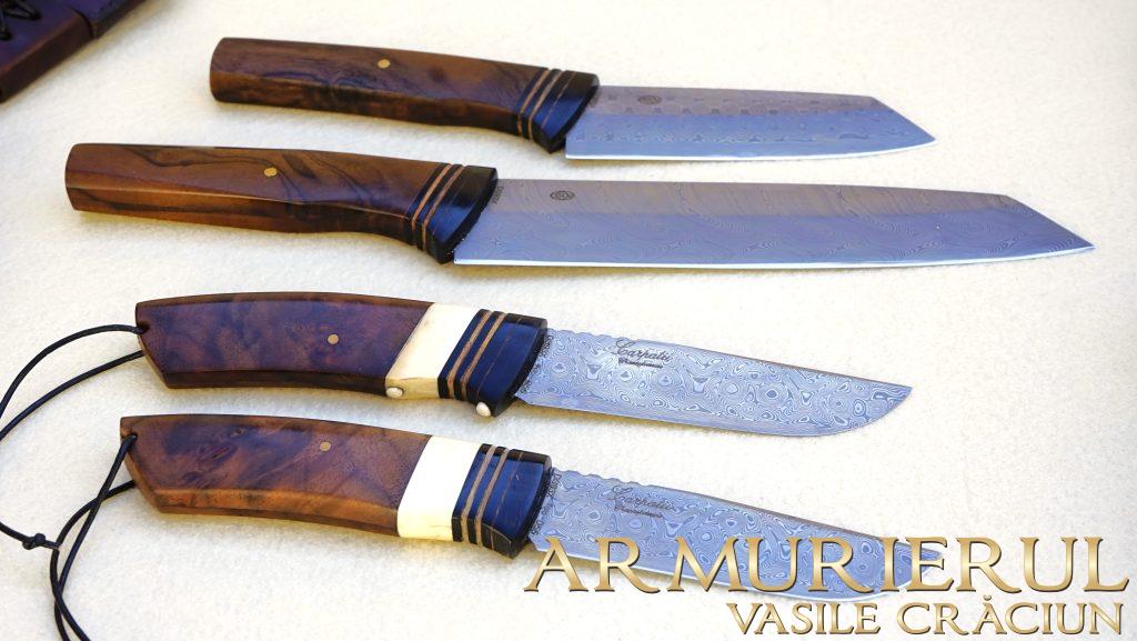 Otel Damasteel DS93x , 64 HRc ,tratament termic profesional in cuptor vidat ,crio ,,,,temperare inalta ,optional DLC ….tratamentul termic in total are 12 -18 ore ,acest tratament este unul din cel mai performant si precis tratament termic pentru oteluri ,este unul din secretele armurierului , toate lamele produse de catre armurier au astfel de tratamente ofera certificare pentru toate lucrarile , astfel de tratamente ofera otelului o structura fina recomandata de producator , duritate mare ,astfel lama devine dura si usoar flexibila .Aceste tratamente pot fi obtinute cu dotarea necesara doar de catre profesionisti in tratamente termice .Tote cutitele sunt marcate ,inseriate ,pot fi numite cutite CRV .